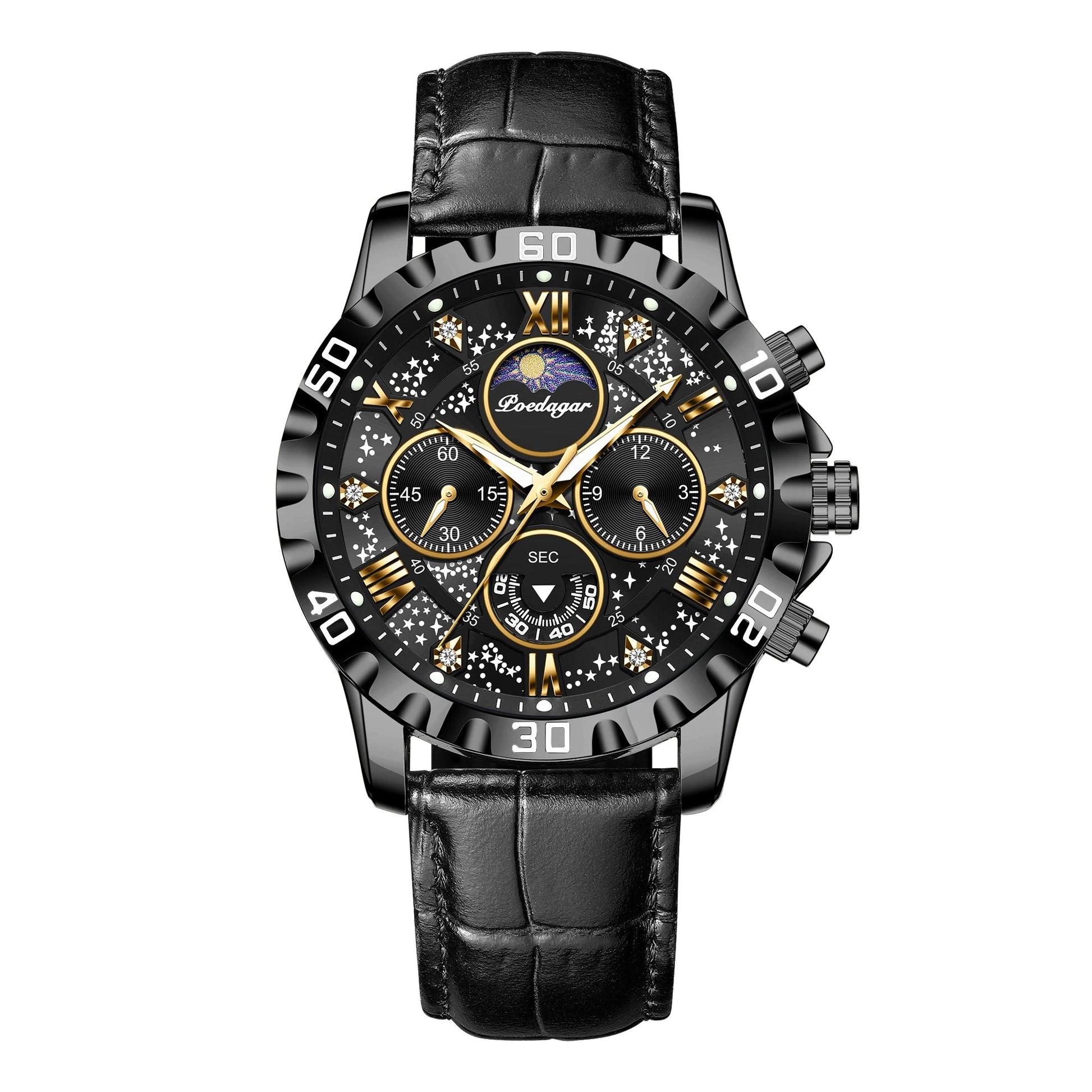 Relógio de Couro Masculino POEDAGAR - Elegância e Funcionalidade