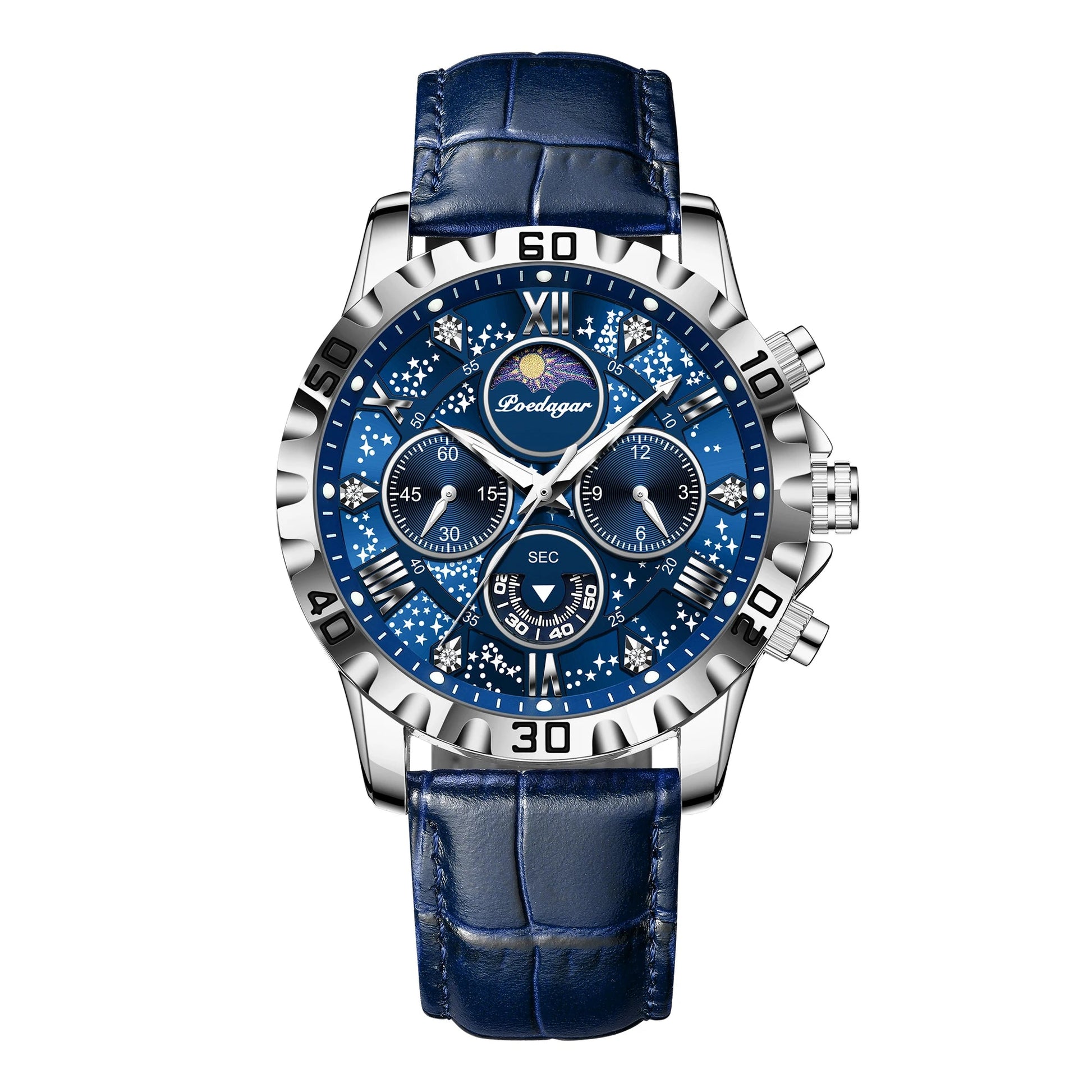 O Relógio POEDAGAR combina um design sofisticado com funcionalidades avançadas para homens que buscam estilo e precisão. Com pulseira de couro legítimo, resistente à água e viseira em cristal de safira, este relógio é a escolha perfeita para quem deseja um acessório durável e elegante para qualquer ocasião.