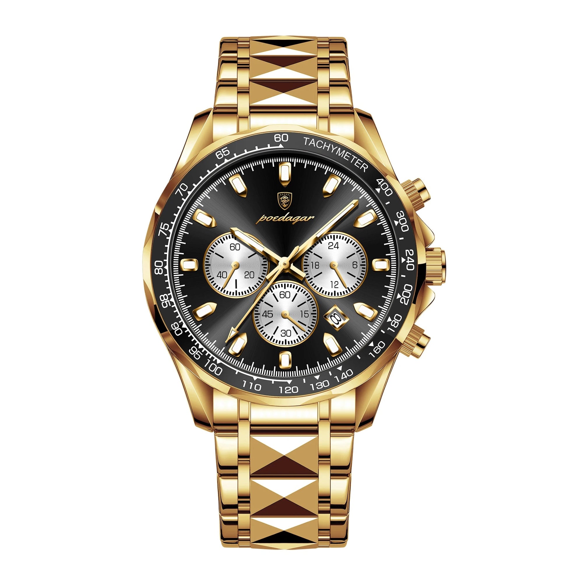 - Funções Avançadas: Cronógrafo, dados automáticos, ponteiros luminosos e resistência à água.
